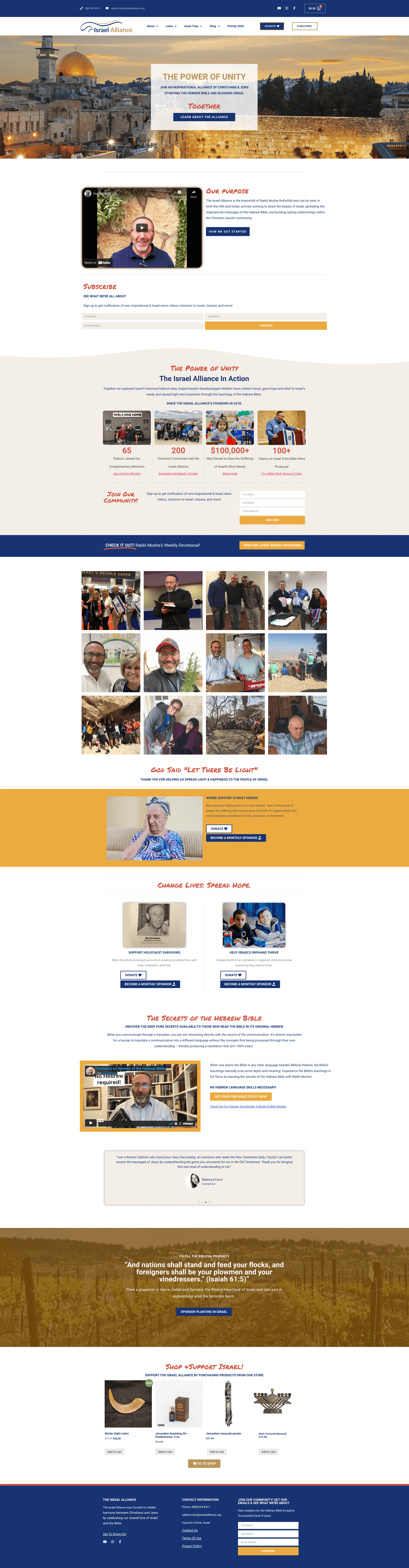 The Israel Alliance is a nonprofit that shares the beauty of Israel, spreads the inspirational messages of the Hebrew Bible, and builds respect within the Christian-Jewish community.